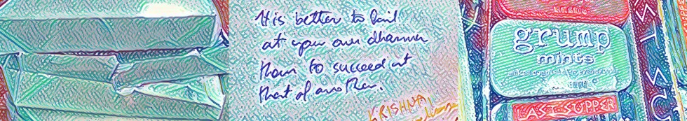 Dharma is an annoying Sanskirt word that means, almost, whatever it is that you want it to mean at the moment you’re deploying it. For me, right now, it means, purpose. With a capital P, I suppose. Maybe in all caps to boot. PURPOSE. As in, “What the hell is my purpose in life?”