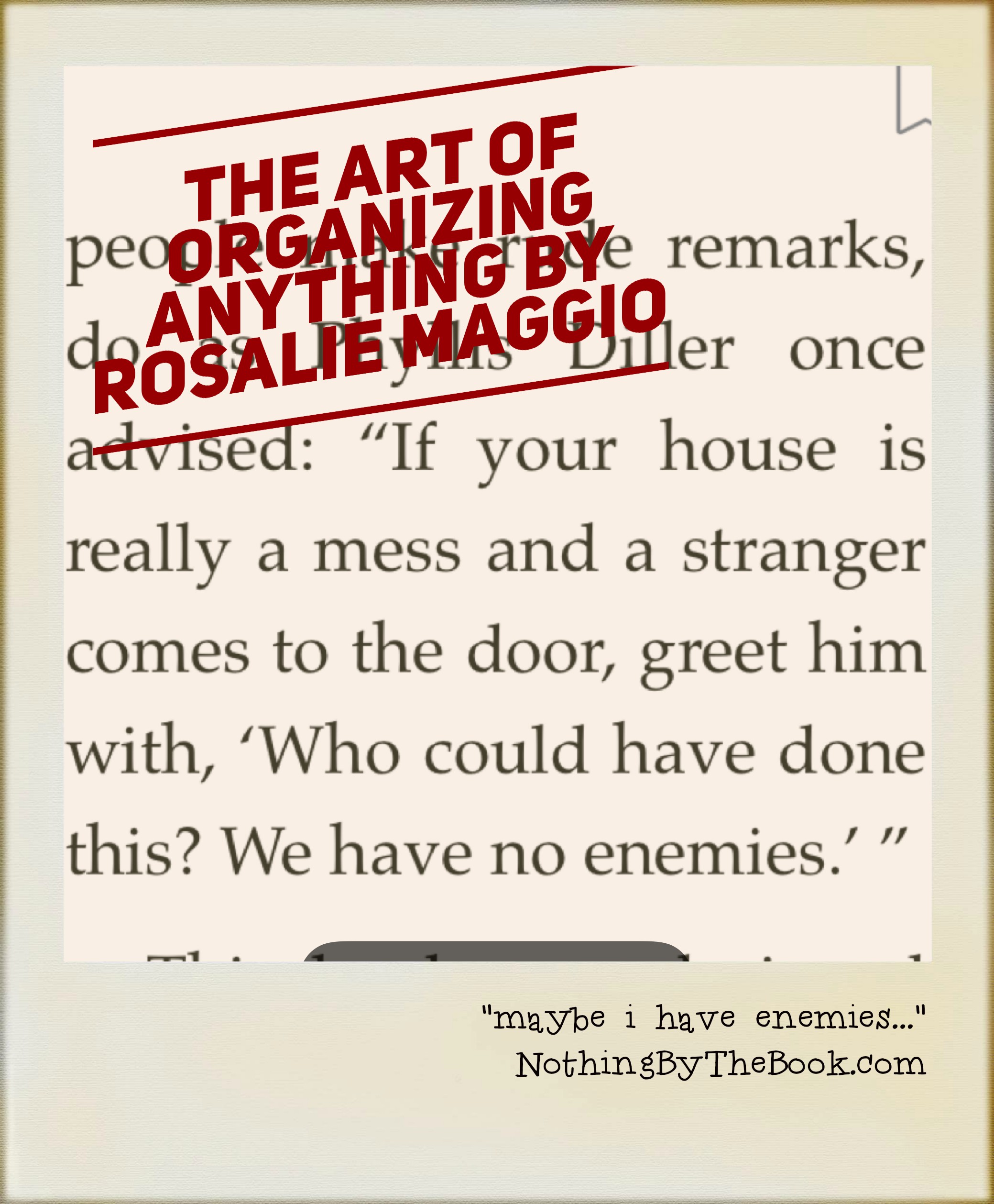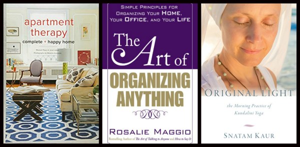 I’m reading, simulatenously, Apartment Therapy by Maxwell Ryan, The Art of Organizing Anything by Rosalie Maggio, and Original Light by Snatam Kaur). I should be reading billionaire romances. Four more to go… no, three—before March 7.
