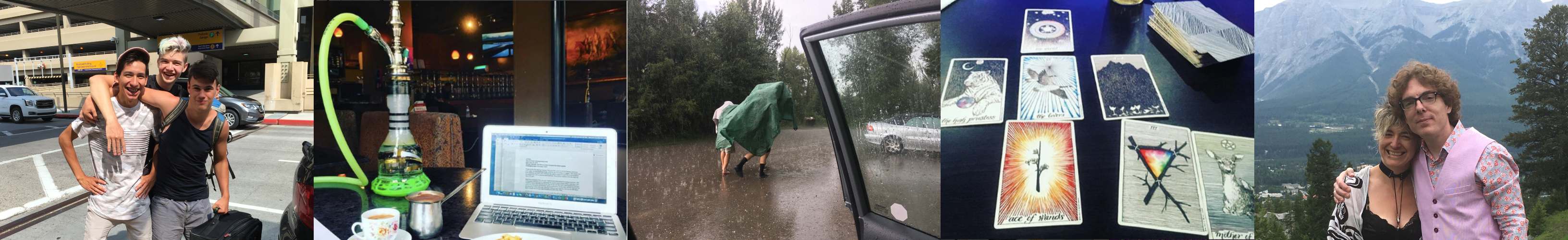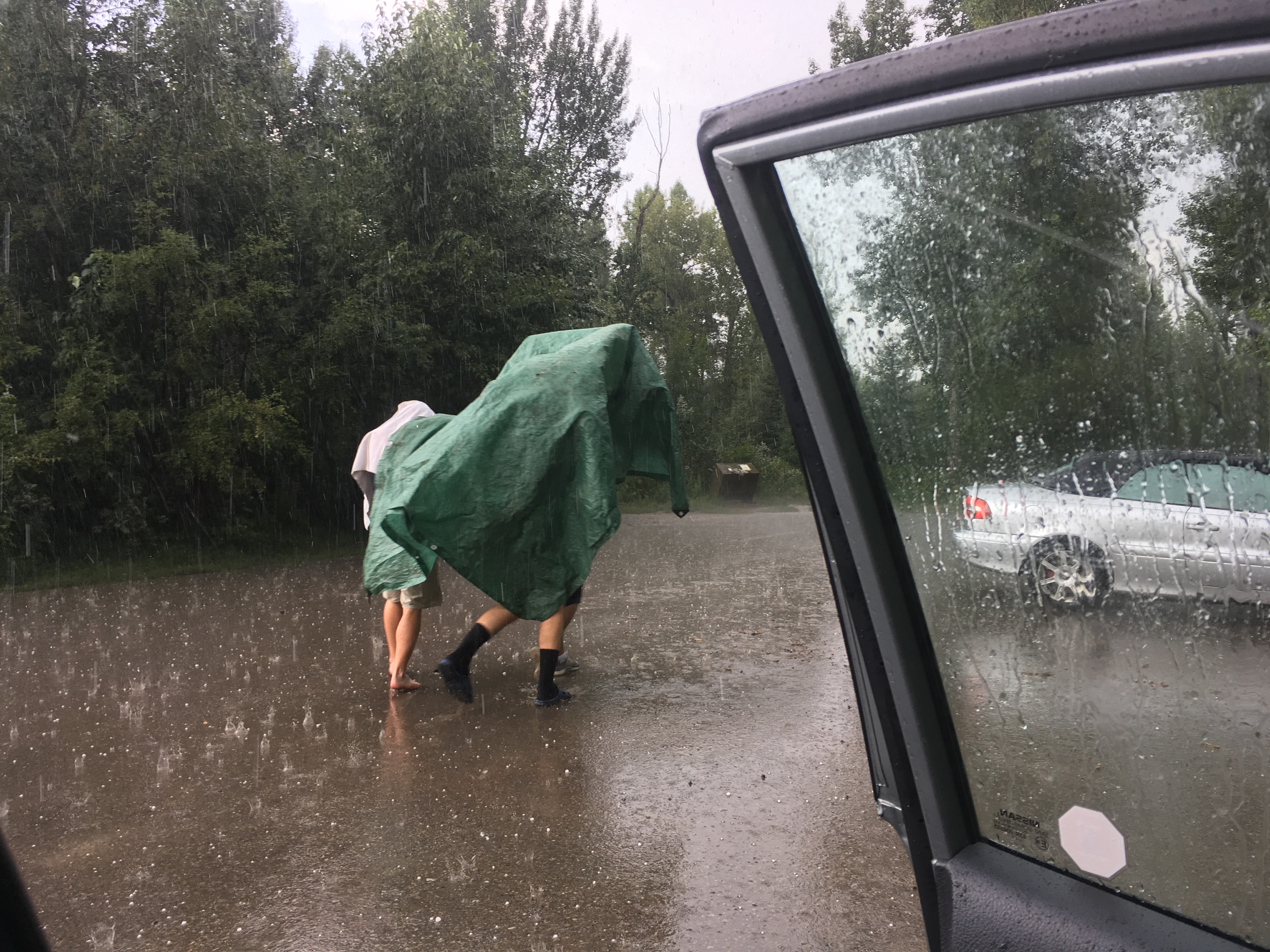 Monday, I mixed up days and times, showed up for an interview 24 hours early, oops, better early than late. But then, a surprise Moscow Mule in the middle of the day—that was lovely. Drove gaggle of teenagers to the Secret Spot. Thunder. Hail. Tarp. Goofs. So happy.