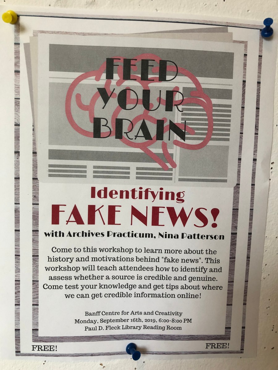 Fake News Published October 4, 2019 at 3024 × 4032 in Heaven Hangover, or, thoroughly non-journalistic reflections on the Investigative Journalism Intensive, Banff Centre 2019 ← Previous Next →