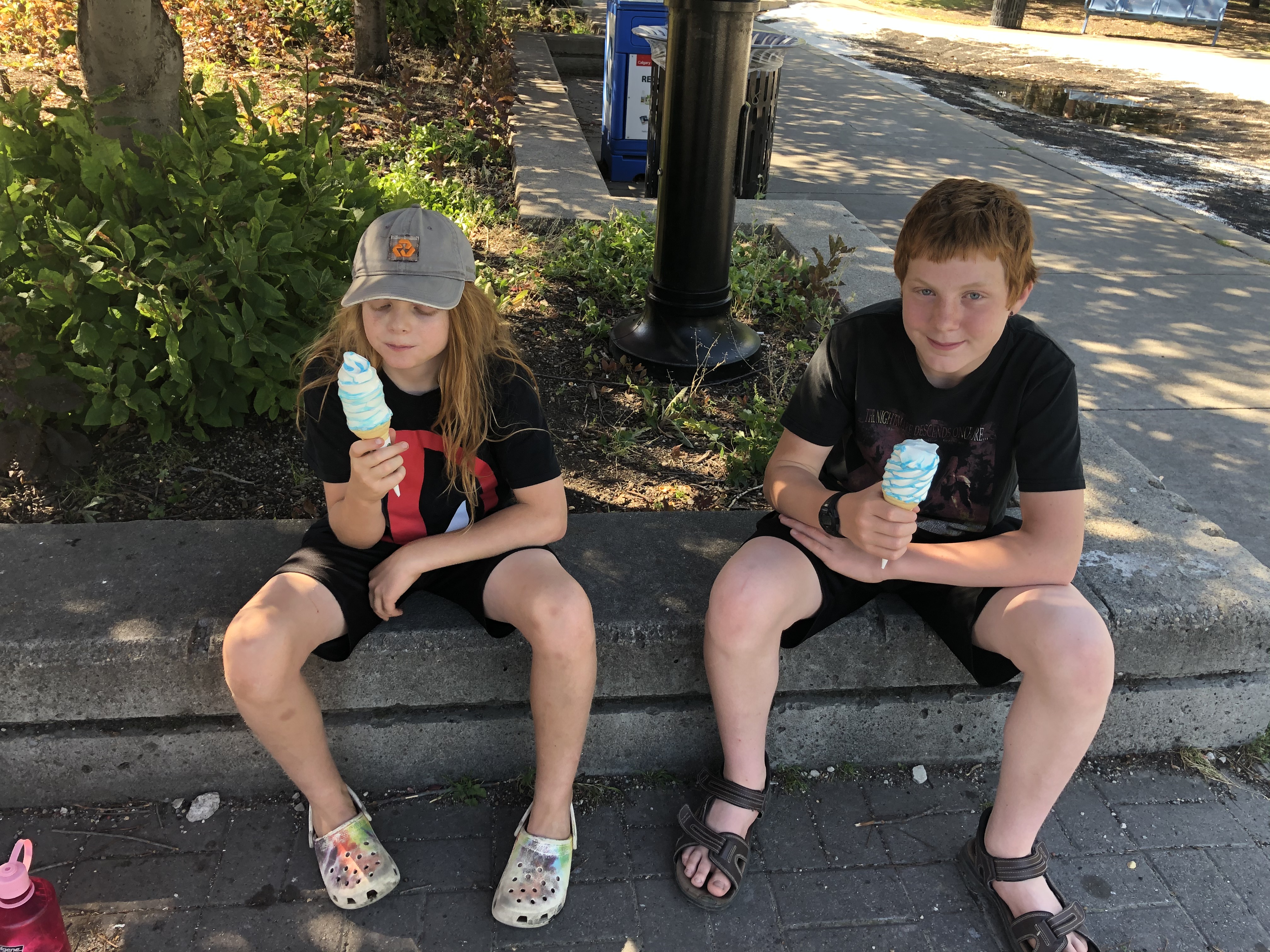 I rather love it, to be frank. I wrap a wet scarf around myself when I do have to walk, I stay in the shade and in my cool hobbit-cave of a house. I sit under a tree by the river and watch it swim by lazily. I take Ender rafting—and yes, son, we will go again on Thursday—and we bike, early in the morning before it gets too hot, to get ice cream. Ice cream—yes, this is the weather for eating ice cream—no, actually, it’s almost too hot, eat it quickly, lick as fast as you can before it melts, savour it after…