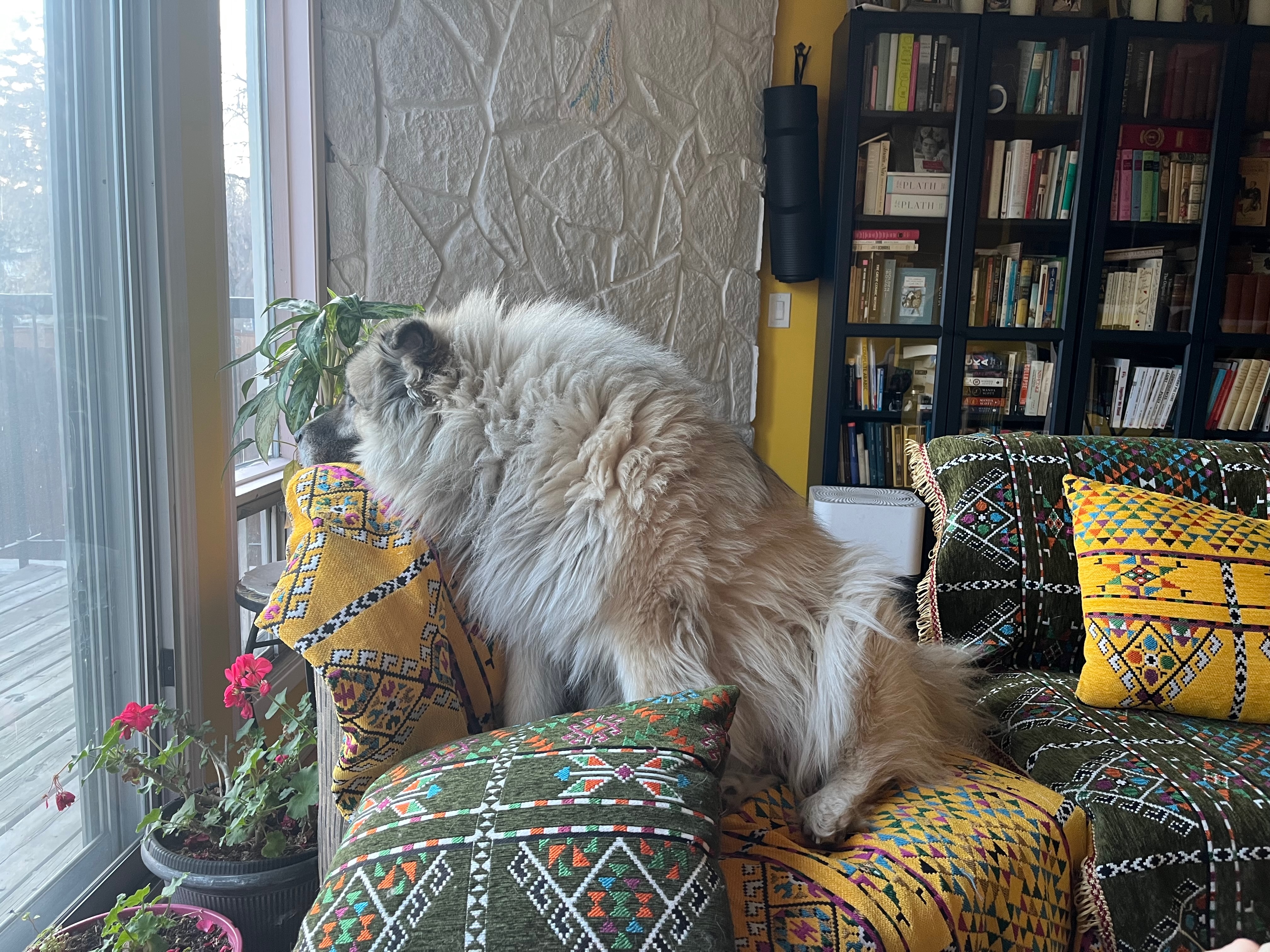 I ponder vacuuming the couch before lounging on it, but I’m wearing pants in which I’ve walked the dog three times today — there is no point. I sigh, and cover the dog hair with my legs.