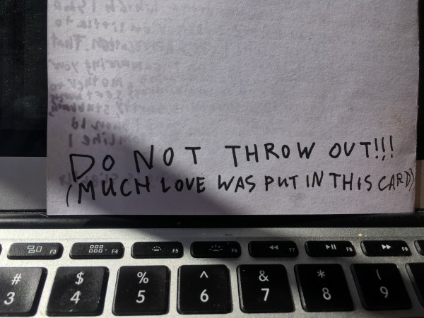 But this is also not part of this story in which I’m trying to not thinking about the reader. (But do you see how, because I’m trying to not think about the reader, you are only able to follow because you love me and you think I love you, and you hope that, perhaps, I’m writing for you, trying to not think of you? Good. That’s the point, at last part of it.)