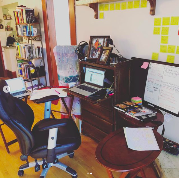 My work is not really moving forward in a significant way—well, I did plot out the next [Series Title Deleted] novel, and I’ve got some words down on that, I should not downplay that—but most importantly, my brain feels like it’s waking up, I am drinking art and I am surrounded by people loving and making art and music and poetry and making words sing, and I am so alive even when I am almost too exhausted to move.