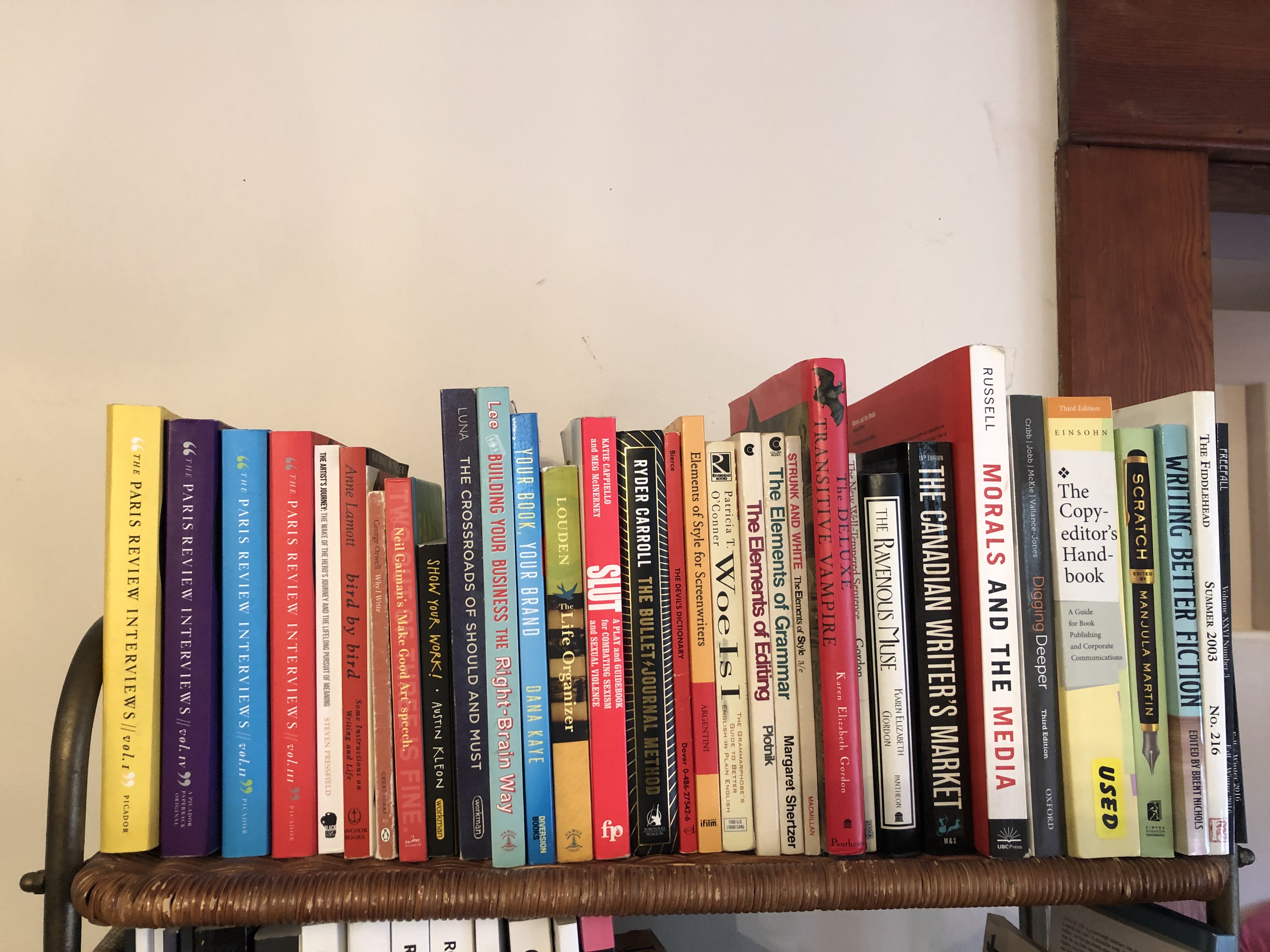 The Paris Review Interviews, Anne Lammott’s Bird by Bird, Neil Gaiman’s Make Good Art, Strunk and White’s The Elements of Style, and their ilk. At the end, a couple of publications in which I have a byline.