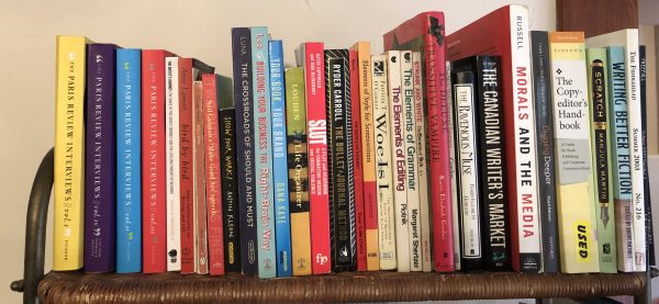 The Paris Review Interviews, Anne Lammott’s Bird by Bird, Neil Gaiman’s Make Good Art, Strunk and White’s The Elements of Style, and their ilk. At the end, a couple of publications in which I have a byline.