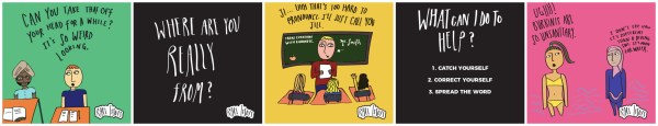 The images and stories presented within these comics symbolize a disconnect between the perception of an equitable Canadian society and the very real experiences of Indigenous peoples of this land and racialized Canadians. Although diverse cultures do coexist and thrive within Canada, many individuals cannot help but feel that their identity is constantly compared and contrasted to whiteness. It is up to all of us to be more conscious of the ways we treat each other, and to avoid the use of microaggressions by being more aware of how biases, stereotypes, and misconceptions frame the way we interact with others. Differences are what make our country such a vibrant and unique place to live, and we all have to learn to embrace people that look, speak, and act differently than we do. When we choose to acknowledge that our personal experiences are not universally shared by everyone, we will no longer react in ways that “other” people for not being just like us. We exist within a time and generation where there is no one way to look or speak Canadian, and it is important that we continue to challenge the assumption that there is.