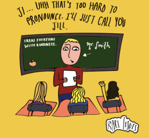 I am not born here. But I don’t get the “Where are you originally from?” question until people hear my name.* Anne, Eman—they get it on first sight.