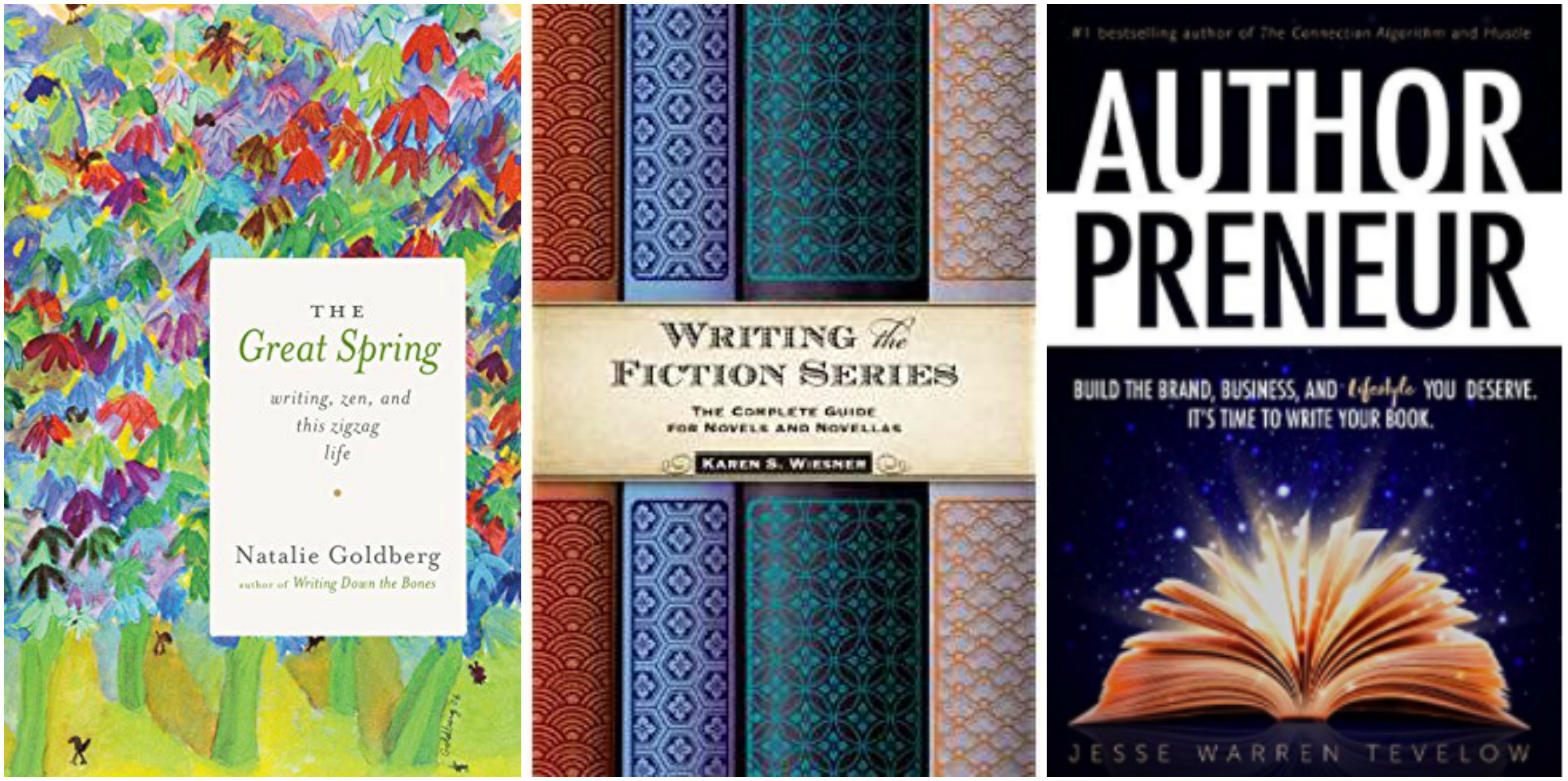 I’m reading Natalie Goldberg’s The Great Spring: Writing, Zen, and This Zigzag life. Also, Karen S. Wiesner’s Writing the Fiction Series and Jesse Warren Tevelow’s Authorpreneur.