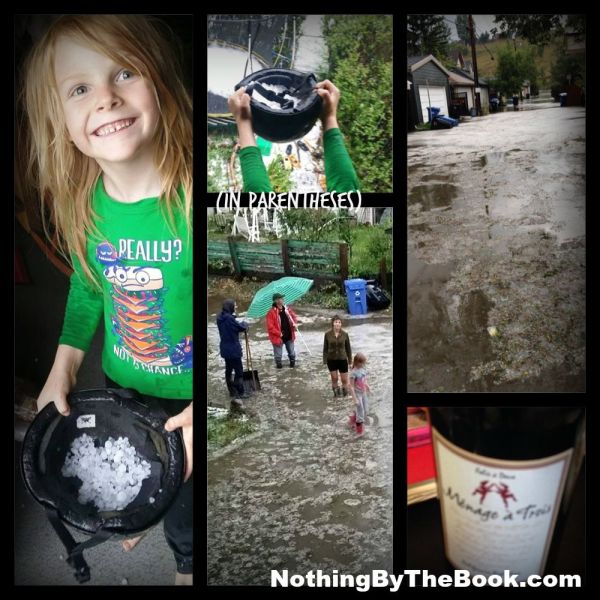 The storm sewer drain is a bubbling fountain, and we are knee-high in freezing hail water, helpless and wanting to be doing something, but what?