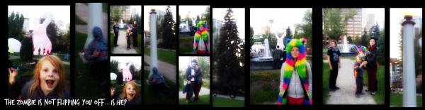We stop at my house to check on Ender, who is on his third day to becoming a master sewer. I’m astounded by the progress he’s made since we got him the sewing machine on Friday. He’s made, like, pants. Also a toque. But pants! Three pairs – the last one is, he decides, wearable.